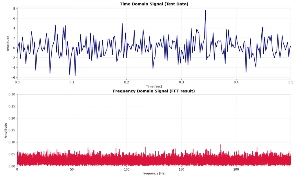 ここでホワイトノイズを実際に生成し、そのFFTの結果を見てみましょう。