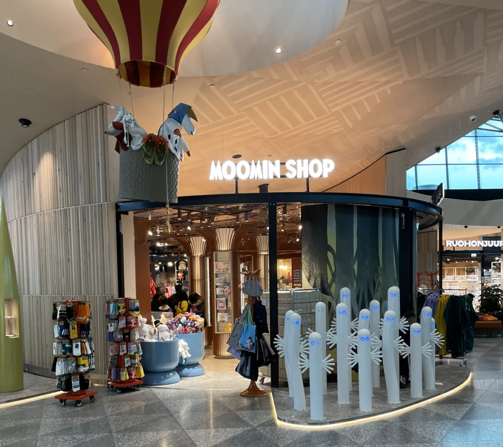 ただ、この空いているレーンでも間に合わなさそうだったので、空港職員に声をかけて、次の乗り継ぎ便が7:10出発であることを伝えると優先的にレーンを進ませてくださいました。こういう時に、ある程度英語が話せると便利だなと再度認識しました。一応間に合わなくても、JALからの提案の乗り継ぎ便なので、ヘルシンキ着が遅れて乗り継ぎができなかった場合は振替をしてくれるみたいですが、やはり自分の旅行の時間が短くなってしまうので、できるだけ間に合うように努力するのが良いでしょう。無事入国審査を終えると、フィンランドの名物ムーミンがお出迎えしてくれます(笑)。